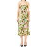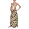 Liu Jo Kleid Rock Langer Rock Kleid für Damen aus Viskosestoff mit tropischem Blumenmotiv bedruckt, vielseitiges Modell, das als schulterfreies Kleid oder als langer Rock getragen werden kann, ärmellos, mit gesmoktem Band an Brust oder Taille, versteckten Schnürsenkeln zum Binden im Nacken und kleiner Logoplakette aus goldfarbenem Metallschmuck auf der Rückseite