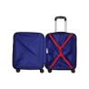 - Innenraum mit überkreuzten Kleidergurten, Trennwand mit Reißverschluss und Seitentasche.