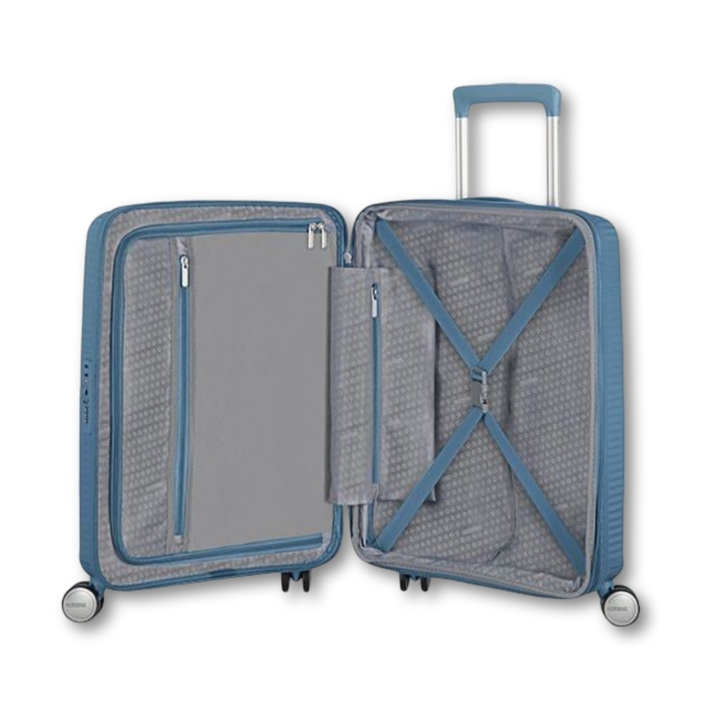 Trolley medio leggero con combinazione a tre cifre con funzione TSA per una ulteriore sicurezza e doppie ruote scorrevoli per un trasporto confortevole. Capacità 71.5/81 litri, peso 3.7 Kg