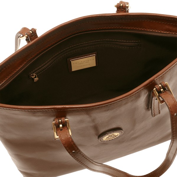 Der Bridge-Leder-Shopper mit Tragegriffen hat ein elegantes und schlichtes Design. Minimalistisch und elegant, passt es perfekt zu einem lässig-schicken Outfit. Seine klaren Linien und geprägten Details unterstreichen die Qualität und Handwerkskunst des Produkts.