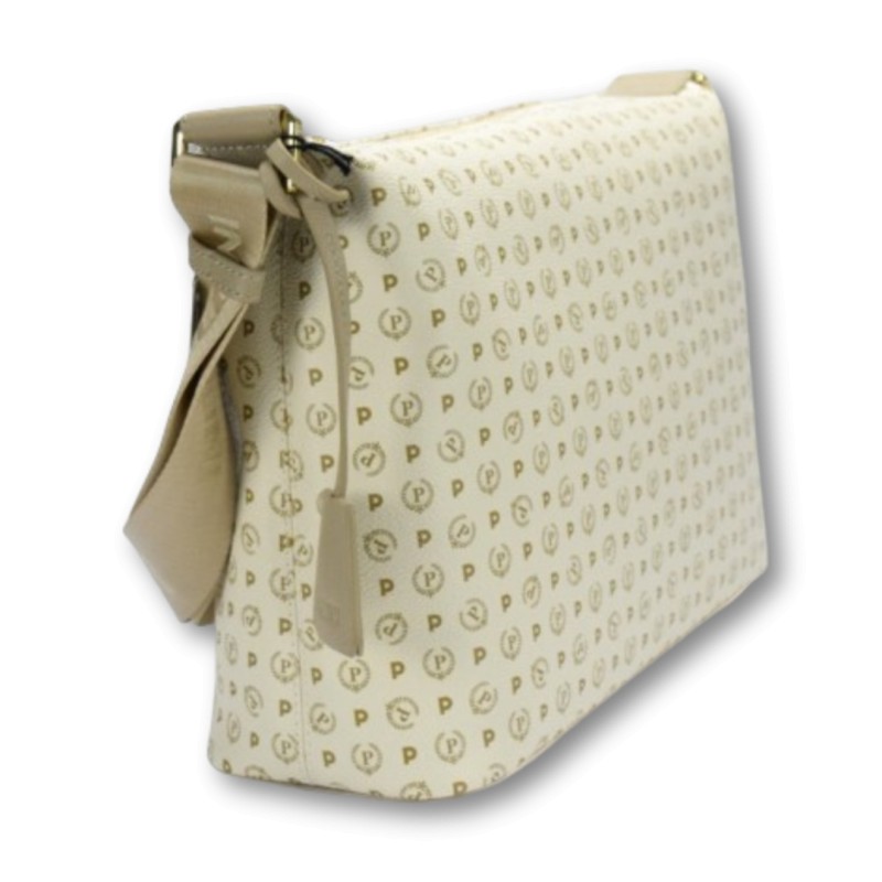 Borsa Pollini in similpelle. Doppia portabilità: a spalla e a bandoliera. Tracolla in nastro di nylon regolabile. Logo in metallo applicato sul quadrante frontale. Chiusura con zip in testa. Interno foderato con tasca con zip e tasca aperta.