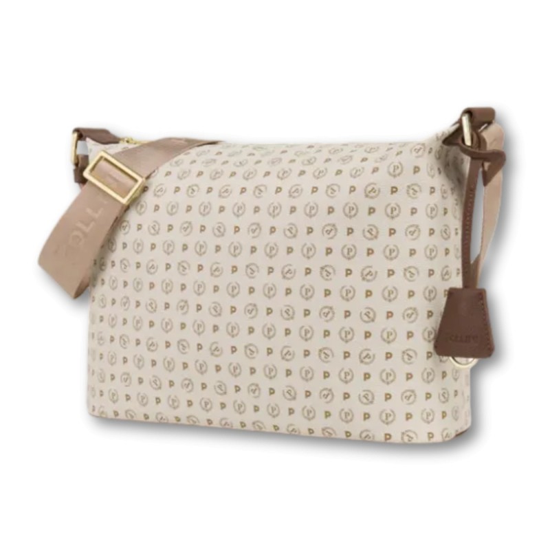 Borsa Pollini in similpelle. Doppia portabilità: a spalla e a bandoliera. Tracolla in nastro di nylon regolabile. Logo in metallo applicato sul quadrante frontale. Chiusura con zip in testa. Interno foderato con tasca con zip e tasca aperta.