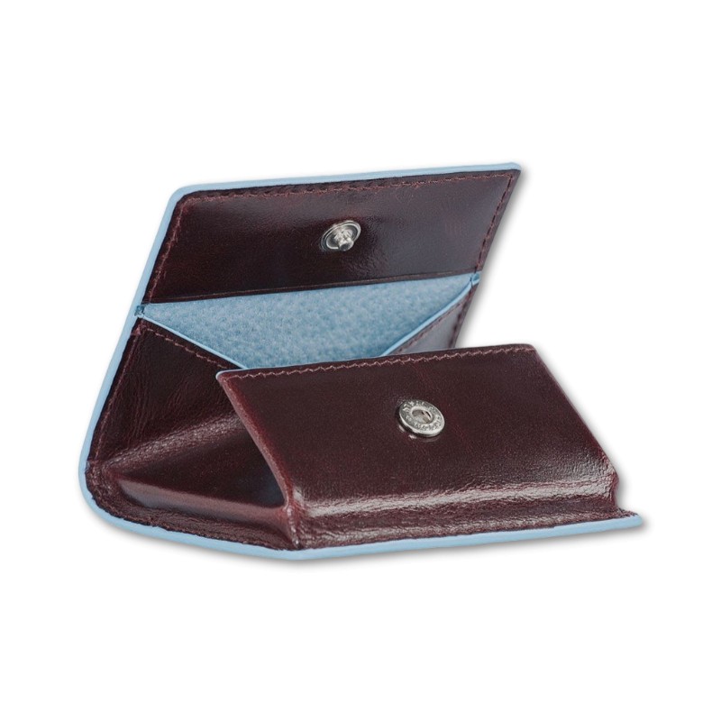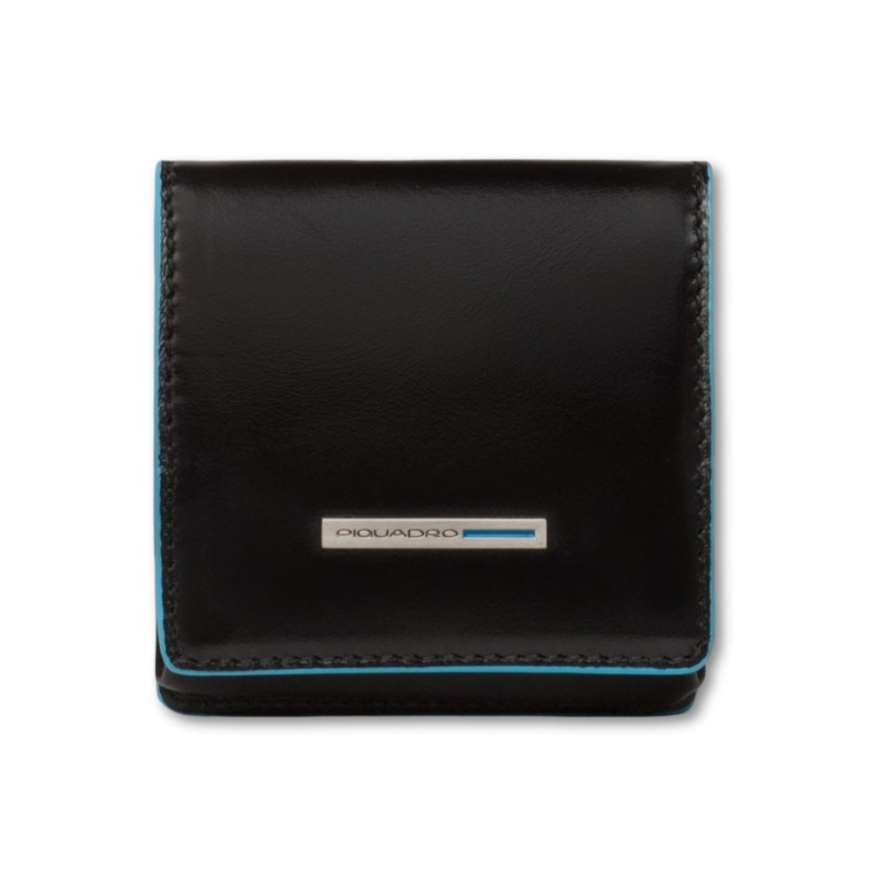 Blaues quadratisches Münzgeldbörse aus Leder mit quadratischem Absatz