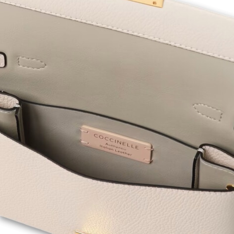Tratto distintivo della linea Arlettis è la fusione del gusto retrò a quello degli anni ’70, per una donna eclettica e femminile. La chiusura, rielaborazione grafica di una lettera C rovesciata, crea continuità con gli elementi distintivi di Coccinelle . Combinazione di modernità ed eleganza, questo nuovo modello della linea Arlettis è una perfetta clutch estremamente versatile. Dotata di tracolla per una doppia portabilità, risulta ideale per ogni occasione speciale. Questo modello è realizzato in pelle lavorata tramite specifici macchinari e poi bottalata al fine di mantenerne la morbidezza. È una pelle molto resistente che si presta a una facile pulizia, ideale per un uso quotidiano.