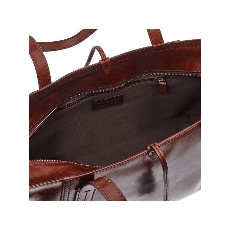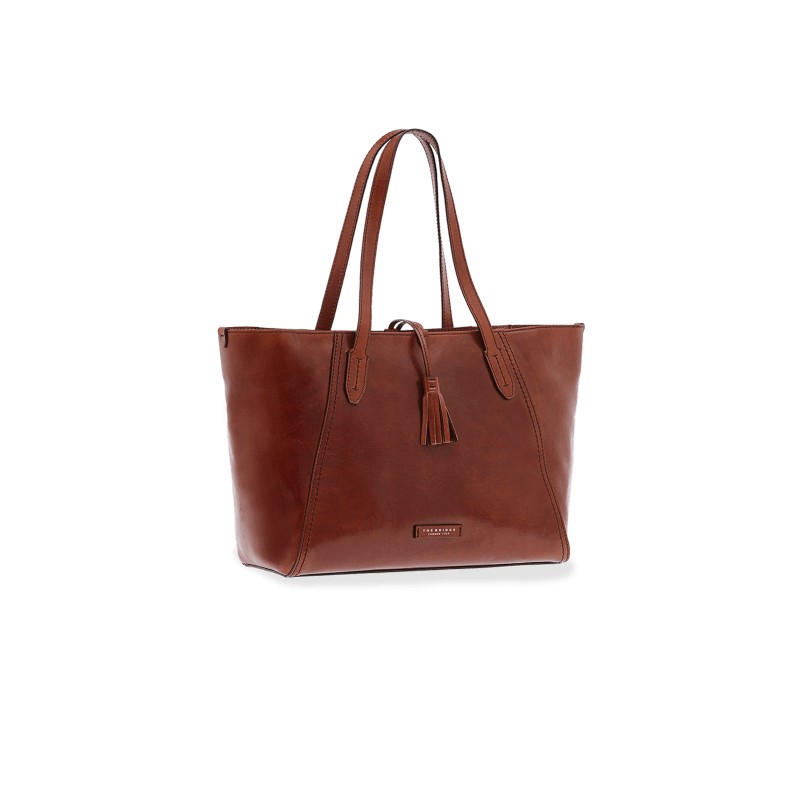 Die Bridge Shopper-Tasche aus Leder hat ein praktisches und modernes Design. Es ist geräumig und bietet Ihnen Platz für alles, was Sie für den Tag brauchen. Seine klaren Linien und geprägten Details unterstreichen die Qualität und Handwerkskunst des Produkts.