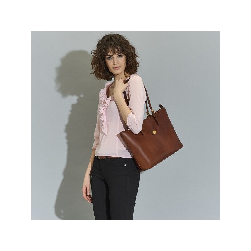 Der Bridge-Leder-Shopper mit Tragegriffen hat ein elegantes und schlichtes Design. Minimalistisch und elegant, passt es perfekt zu einem lässig-schicken Outfit. Seine klaren Linien und geprägten Details unterstreichen die Qualität und Handwerkskunst des Produkts.