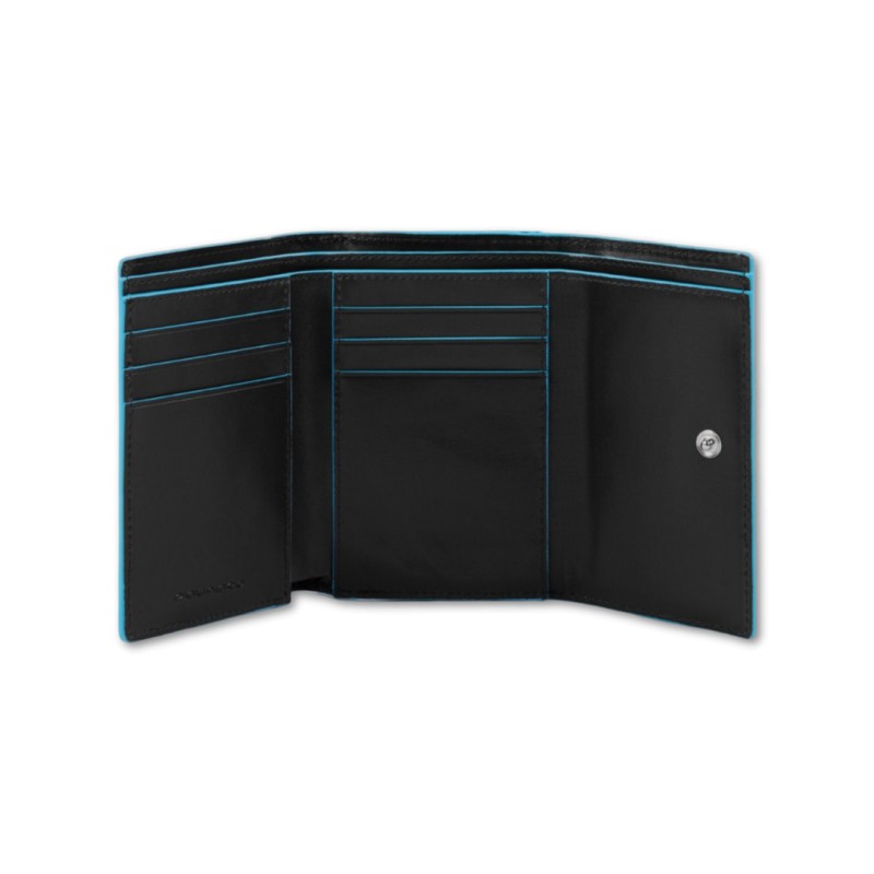 Kleine Geldbörse für Damen mit Münzfach auf der Rückseite, Kreditkartenhalter und RFID-Schutz gegen Betrug, Blaues Quadrat