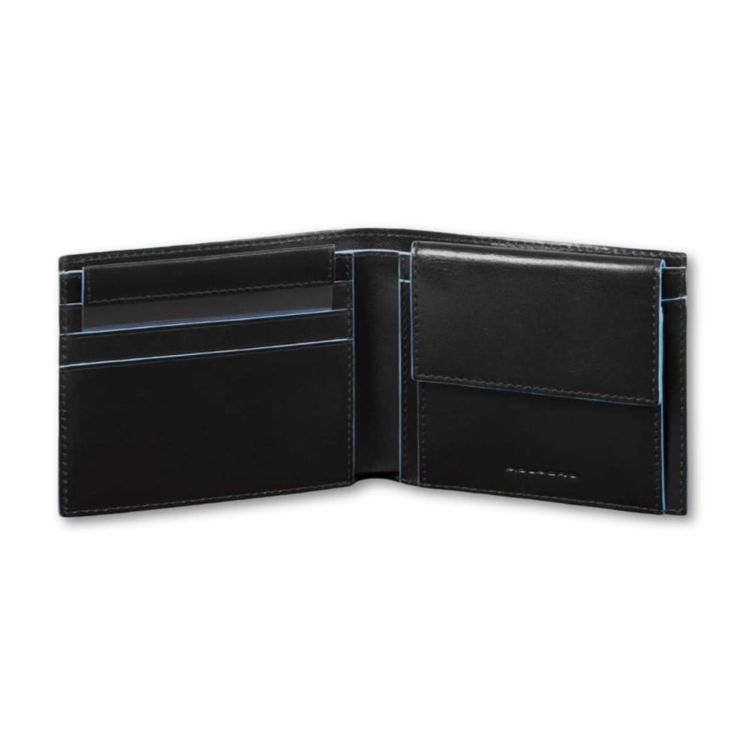 Herren-Geldbörse mit Münzfach, Kreditkartenhalter, abnehmbarem Flyer und RFID-Schutz gegen Betrug, Blaues Quadrat