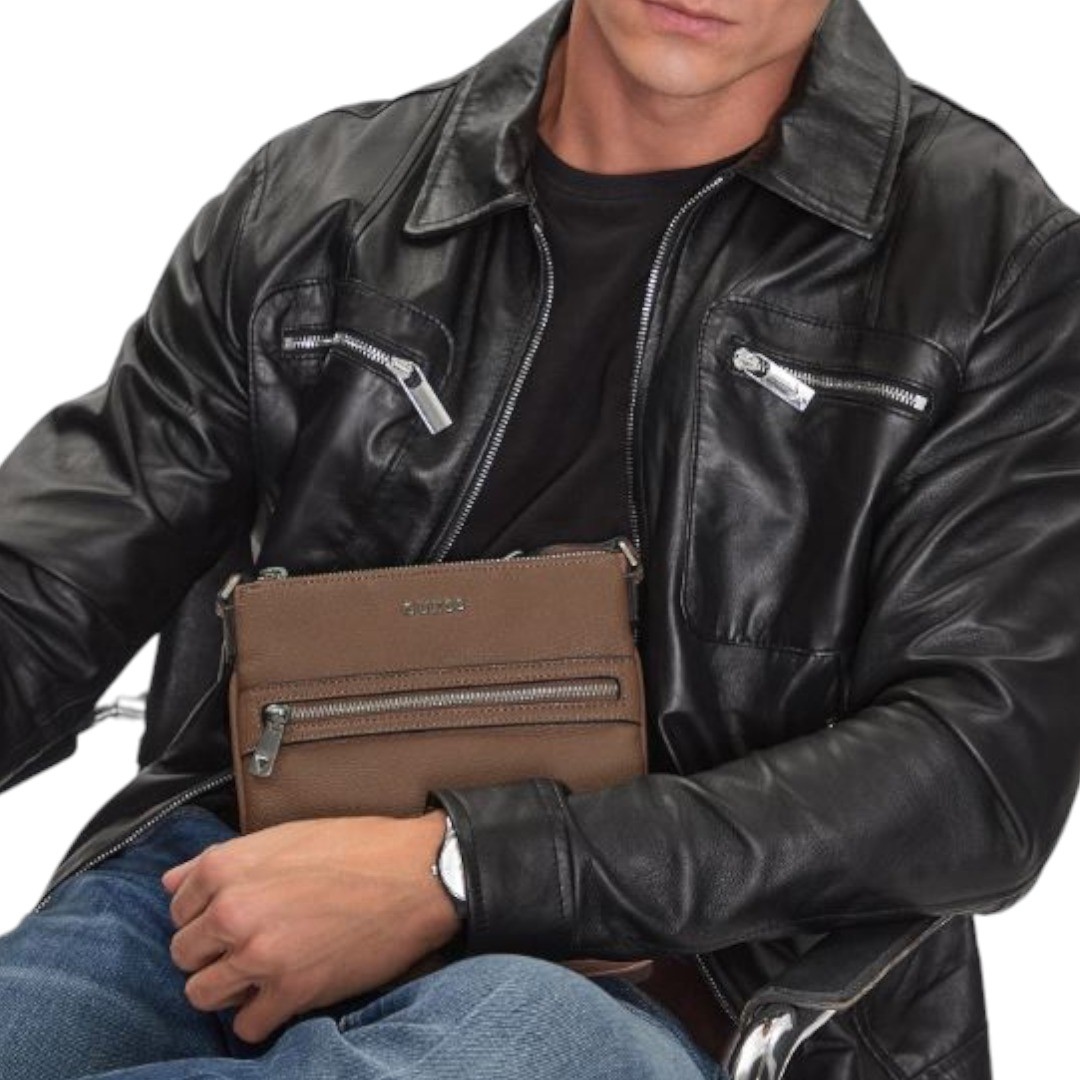 Kunstledertasche für Herren mit Logo auf der Vorderseite, 2 Mehrzwecktaschen außen, zentralem Fach mit Reißverschluss, verstellbarem Schultergurt, gefütterter Innenseite mit 1 Mehrzwecktasche.