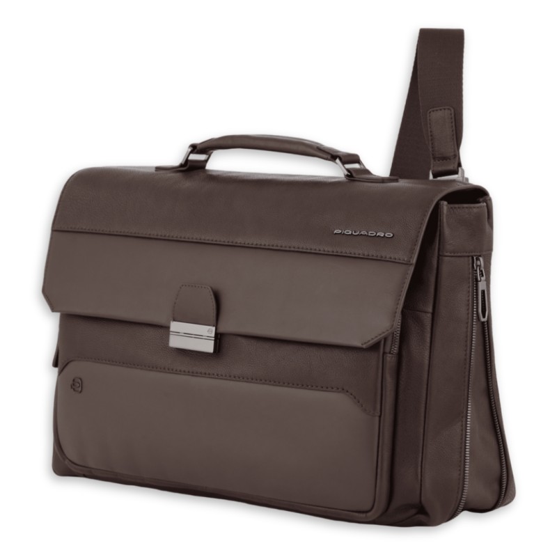 Diese praktische und raffinierte erweiterbare Aktentasche von Piquadro ist aus Naturleder gefertigt und verfügt über ein mit einer Klappe verschlossenes Fach. Das Modell verfügt über eine Innentasche für einen Laptop bis 15,6 Zoll und eine für ein Tablet bis 11 Zoll sowie eine Tasche für Connequ. Außen mit Trolley-Aufnahme, Leder-Handgriff, verstellbarem und abnehmbarem Schultergurt, der sich um 5-6 cm in der Breite erweitern lässt.