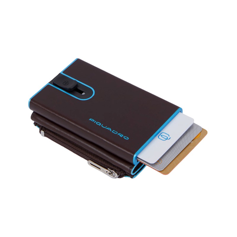 Blaues quadratisches Kartenetui von Piquadro