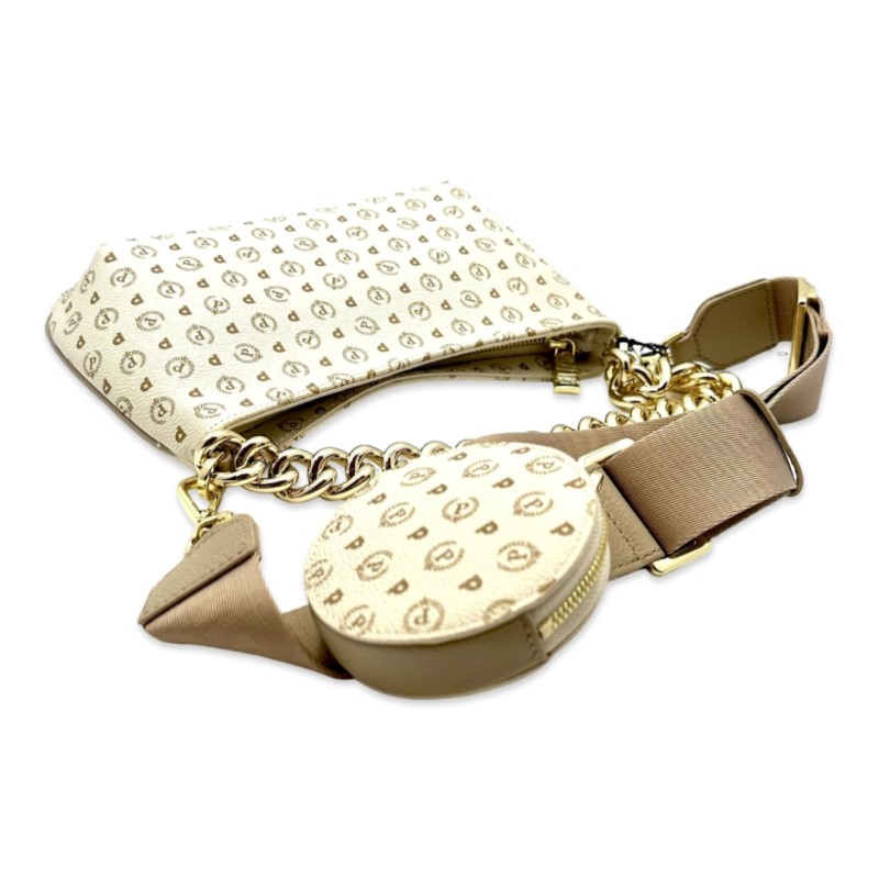 Schultertasche aus der Heritage Logo Classic Kollektion mit dem ikonischen P-Lorbeer-Monogramm-Print. Sportlicher Look gepaart mit elegantem Look dank der großen, leicht vergoldeten Kette, die gleichzeitig als Tragegriff dient. Der Schultergurt aus Jacquardband mit Logo ist mit einem abnehmbaren Mini-Beutel verziert. Kontrastpaspeln betonen die Geometrie der Tasche.