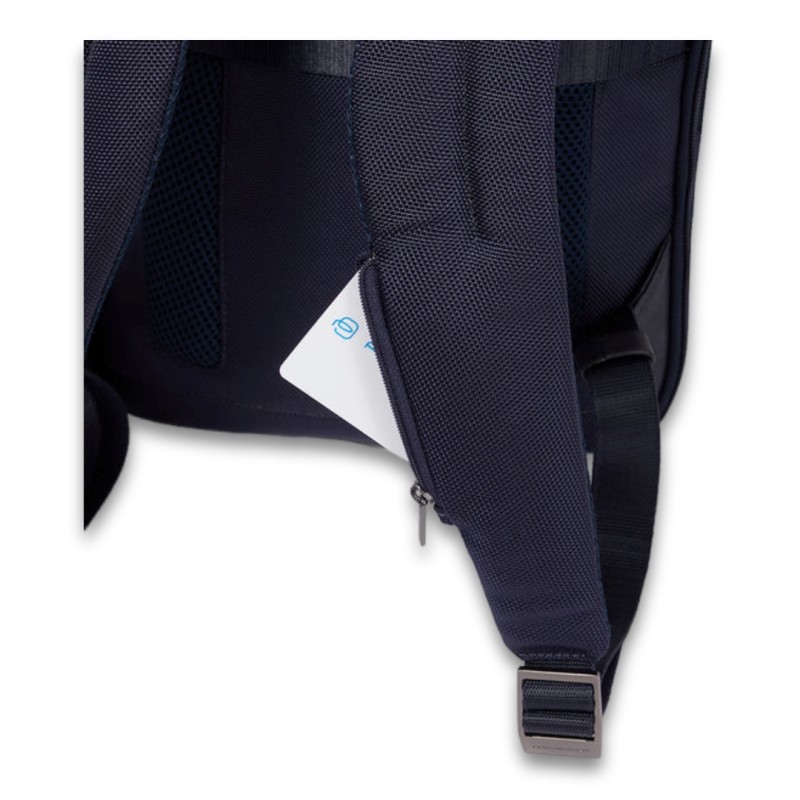 Schlanker Laptop- und iPad®-Rucksack aus recyceltem Stoff und Leder mit AirPods®-Tasche, stoßfest und mit RFID-Schutz, erweiterbar