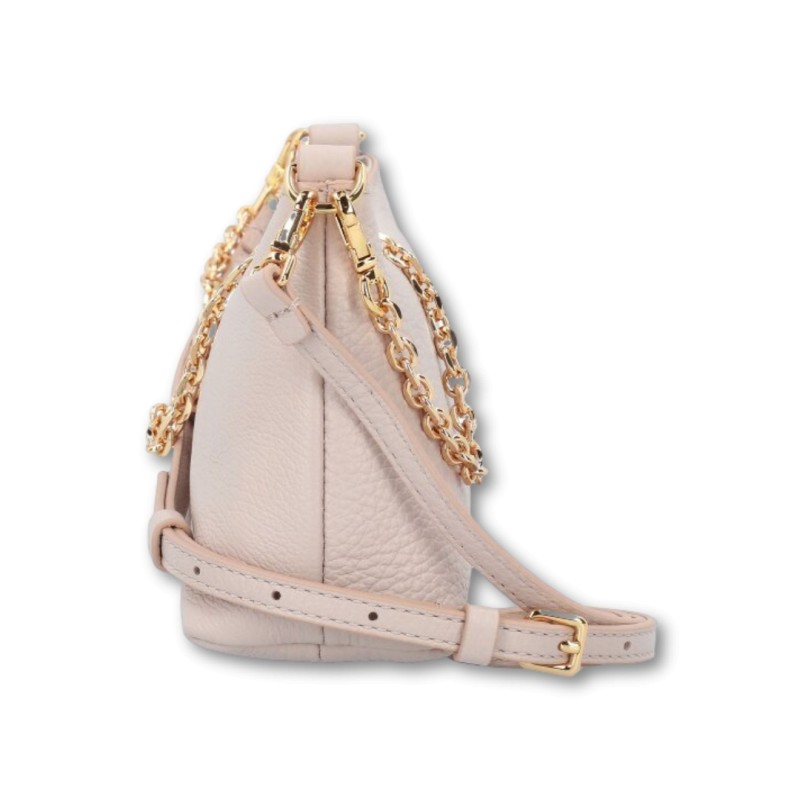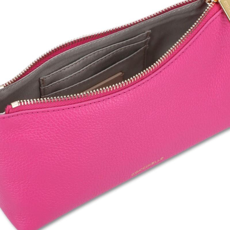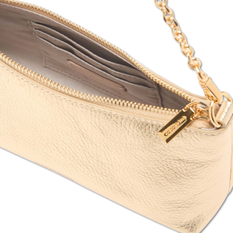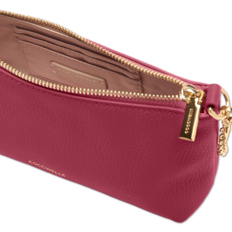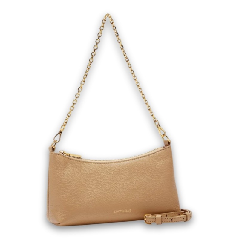 Diese moderne und vielseitige Minitasche aus der Linie Aura von Coccinelle ist dank des bequemen Schulterriemens aus Leder dazu konzipiert, Sie im Alltag zu begleiten. Dank des Kettengriffs ist sie auch perfekt für einen Abendlook. Dieses Modell besteht aus Leder, das mit speziellen Maschinen verarbeitet und anschließend getrommelt wird, damit es seine Weichheit behält. Es ist ein sehr widerstandsfähiges und leicht zu reinigendes Leder, ideal für den täglichen Gebrauch.