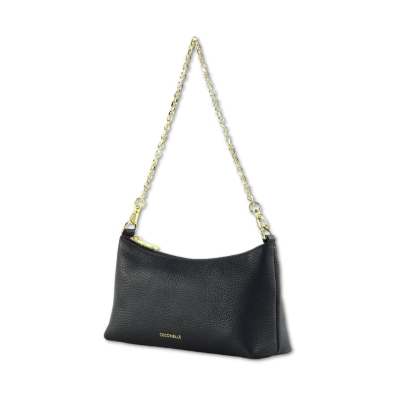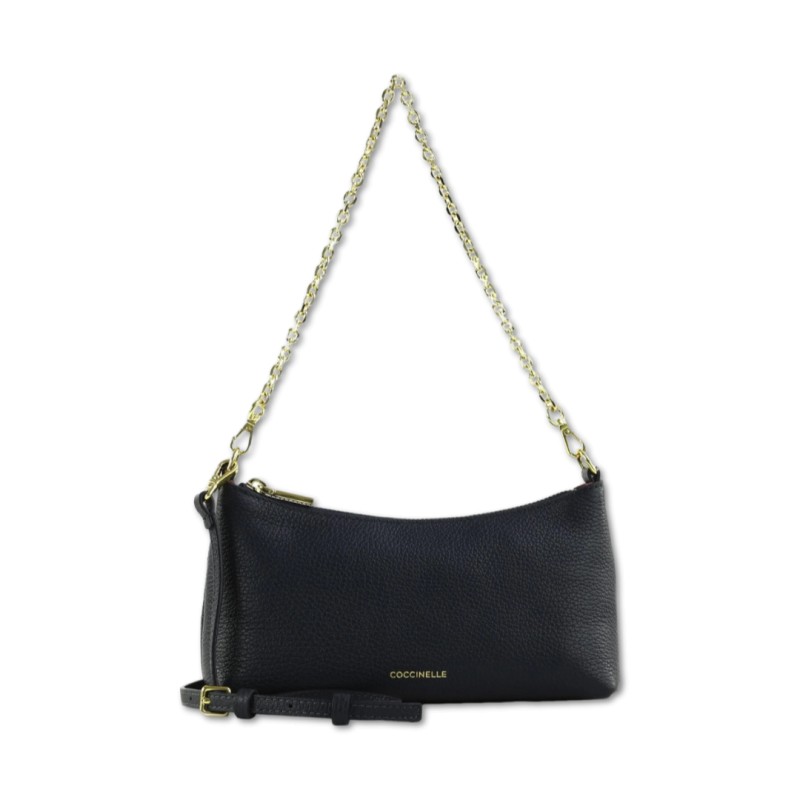 Diese moderne und vielseitige Minitasche aus der Linie Aura von Coccinelle ist dank des bequemen Schulterriemens aus Leder dazu konzipiert, Sie im Alltag zu begleiten. Dank des Kettengriffs ist sie auch perfekt für einen Abendlook. Dieses Modell besteht aus Leder, das mit speziellen Maschinen verarbeitet und anschließend getrommelt wird, damit es seine Weichheit behält. Es ist ein sehr widerstandsfähiges und leicht zu reinigendes Leder, ideal für den täglichen Gebrauch.