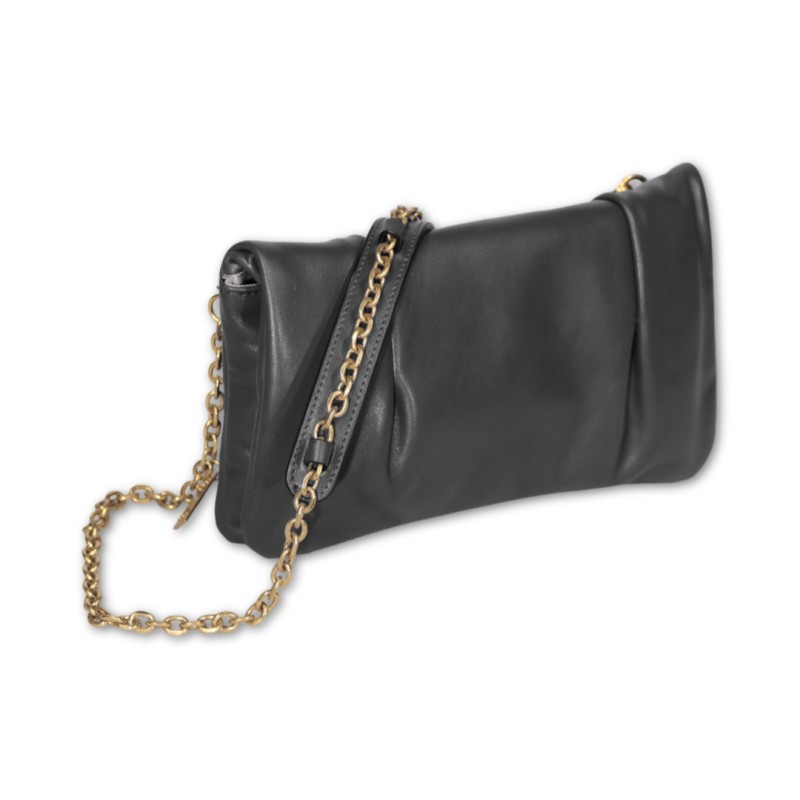 Entdecken Sie den raffinierten Charme der Tasche von Gianni Chiarini, ein Muss für modebewusste Frauen! Mit ihrem schlanken, schwarzen Design und der eleganten rechteckigen Form strahlt diese Tasche pure Klasse aus. Dezente Falten auf der Vorderseite verleihen eine verspielte Note, während der goldene Kettengürtel einen luxuriösen Kontrast bietet.