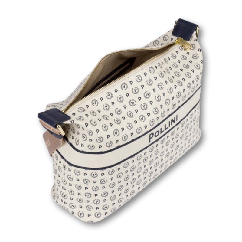 Umhängetasche aus der exklusiven Capsule-Kollektion Heritage Marina, inspiriert von sommerlicher Meeresatmosphäre. Das Heritage PVC erhält durch die Kombination von Elfenbein mit einem meerblauen Muster eine neue Farbe. Charakteristisch für die Tasche ist der auf dem vorderen Zifferblatt platzierte Pollini-Schriftzug. Schultergurt aus Jacquard-Nylon mit Logo für doppelten Tragekomfort: auf der Schulter und quer über dem Körper.