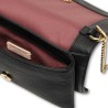 - Abnehmbarer Schultergurt aus Leder und Kette zum Tragen über der Schulter oder als Umhängetasche