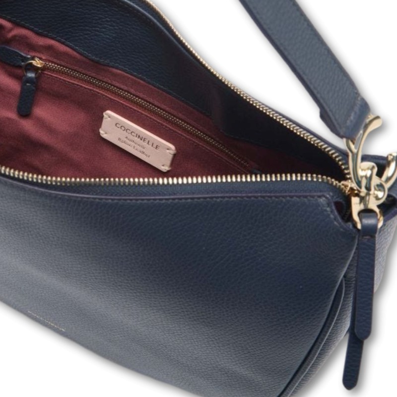 Eine klare Silhouette charakterisiert die Coccinelle C-Easy Linie mit ihren weichen und vielseitigen Formen. Die markante Sattlernaht verleiht Anmut und Raffinesse und verleiht ihr eine einzigartige Ausstrahlung. Ein metallischer Akzent am Griff mit dem neuen C-Me-Logo verleiht dieser vielseitigen Tasche einen Hauch von Eleganz. Dieses Modell ist aus Leder gefertigt, das mit Spezialmaschinen verarbeitet und anschließend gewalkt wurde, um seine Weichheit zu erhalten. Das äußerst strapazierfähige Leder ist leicht zu reinigen und somit ideal für den täglichen Gebrauch.