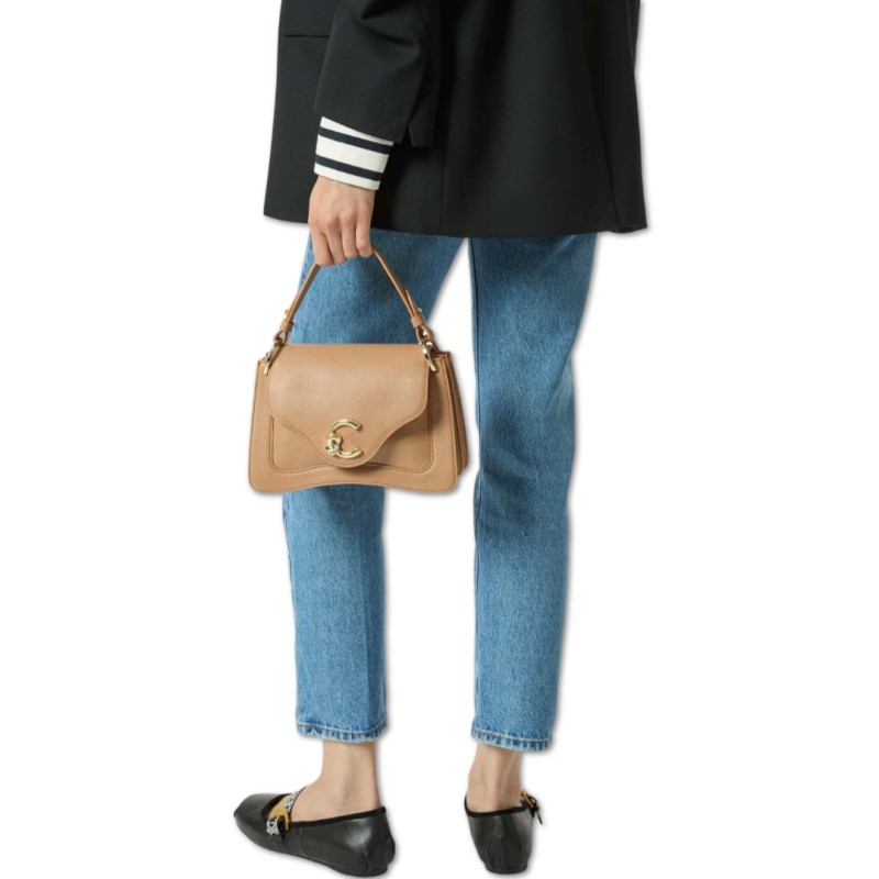 Ein neues Signature-Stück ergänzt die Marke: Coccinelle C-Me. Das Logo wird durch das Coccinelle C neu interpretiert, das das Plektrum, das ikonische Element der Marke, umschließt und umschließt – eine Verbindung, die eng mit dem Leben einer Frau verbunden ist und Vergangenheit und Gegenwart überspannt. Geometrische Linien und raffinierte Kurven unterstreichen das Design, während die Zwickelkonstruktion dieser Tasche Funktionalität und zarte Eleganz verleiht. Sie ist der unverzichtbare Begleiter der Coccinelle-Frau durch den Tag. Dieses Modell ist aus Leder gefertigt, das mit Spezialmaschinen verarbeitet und anschließend gewalkt wurde, um seine Weichheit zu erhalten. Das äußerst strapazierfähige Leder ist pflegeleicht und somit ideal für den täglichen Gebrauch.