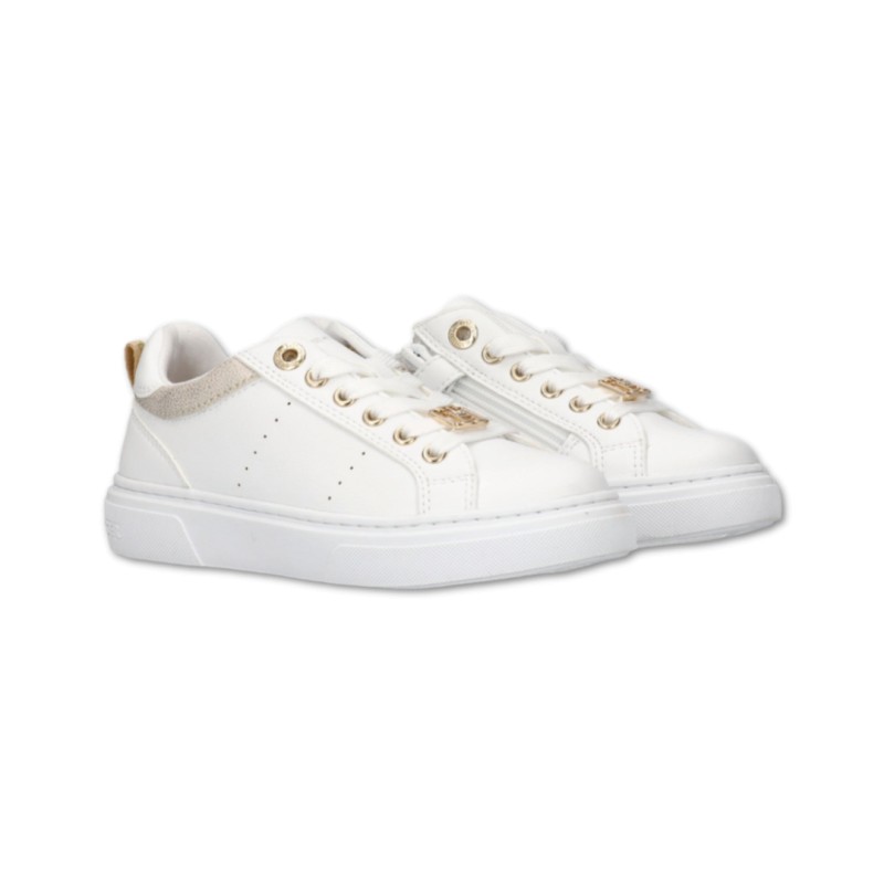 Schnür-Sneaker mit goldener Logo-Spitze