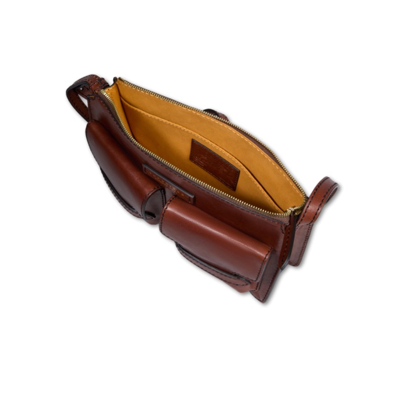Die Lucrezia Leder-Umhängetasche mit Außentaschen ist eine elegante und praktische Ledertasche, ideal für die vielseitige und feminine Frau. Tragen Sie sie zu jedem Outfit. Sie verfügt über einen durchgehenden Reißverschluss, einen festen und verstellbaren Schultergurt, zwei Außentaschen und das Bridge-Logo. Dieses Modell aus der Lucrezia-Serie ist mehr als nur eine Tasche; es verleiht Ihrem Outfit den Hauch von Exzellenz und Eleganz.