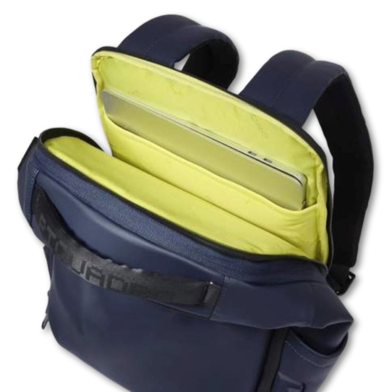 Untersitz-Reiserucksack für Laptop und iPad® aus wasserabweisendem gummiertem Gewebe mit Stoßdämpfung und RFID-Schutz sowie Fahrradlichthalterung