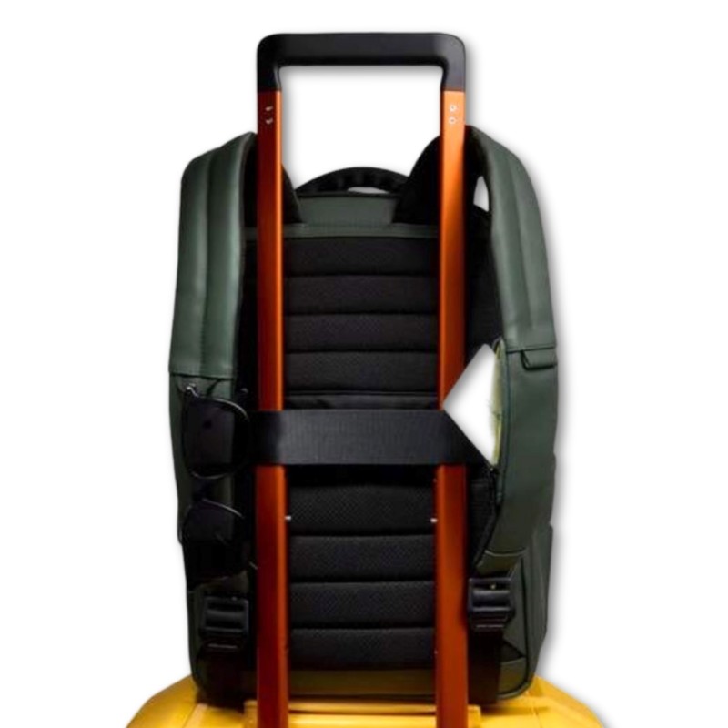 Untersitz-Reiserucksack für Laptop und iPad® aus wasserabweisendem gummiertem Gewebe mit Stoßdämpfung und RFID-Schutz sowie Fahrradlichthalterung