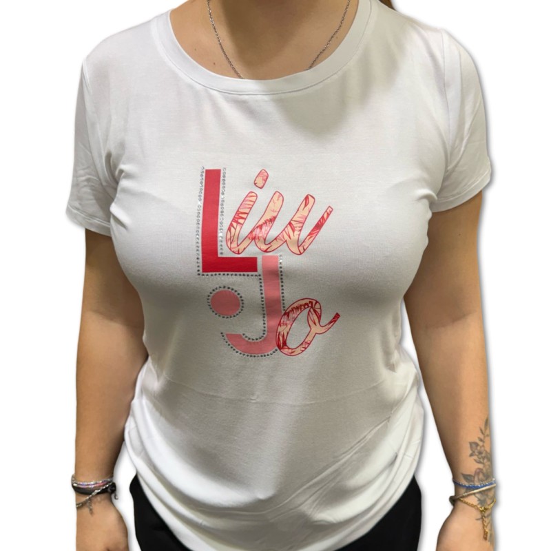 Liu Jo T-Shirt mit Animalier-Logo und Strasssteinen