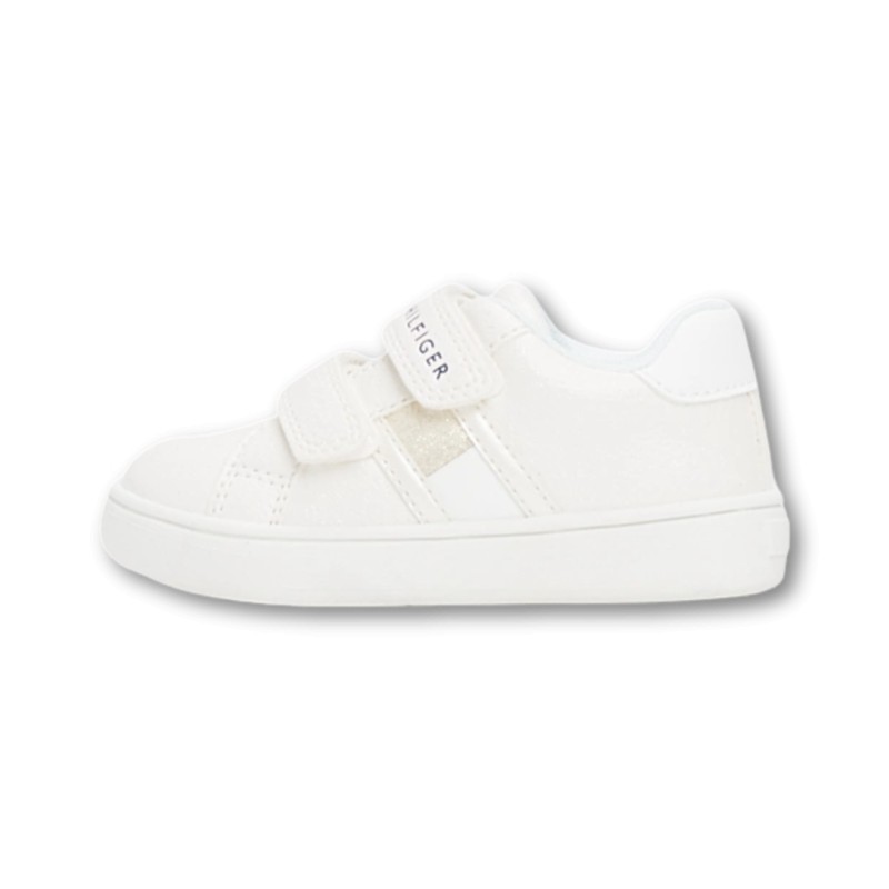 Die bequemen Sneaker mit Klettverschluss sind mit einer Ton-in-Ton-Flagge an der Seite und Glitzereinsätzen versehen, die für einen leuchtenden Touch sorgen.