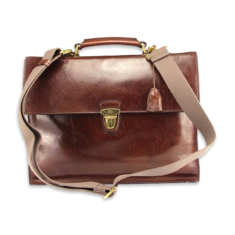 Die Bridge Unisex-Aktentasche aus pflanzlich gegerbtem Leder. Komplett mit Reverse-Leder gefüttert. Zahlreiche Taschen für Schreibwaren, Dokumente und Kleinigkeiten. Eventuelle kleine Unregelmäßigkeiten oder Farbabweichungen stellen keinen Mangel dar, sondern sind eine natürliche Eigenschaft des Leders.