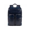 Mochila Piquadro de piel, cierre con cremallera, bolsillos internos multifuncionales, 4 bolsillos externos, correas ajustables y ergonómicas.