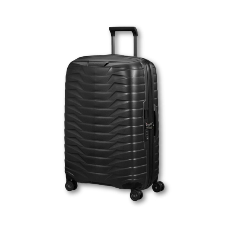 Trolley mediano Proxis, ultraligero (2,7 kg), bloqueo con función TSA, cuatro ruedas silenciosas para mayor comodidad en el viaje, compartimento inferior con divisor y bandas elásticas cruzadas. Capacidad 75 litros.