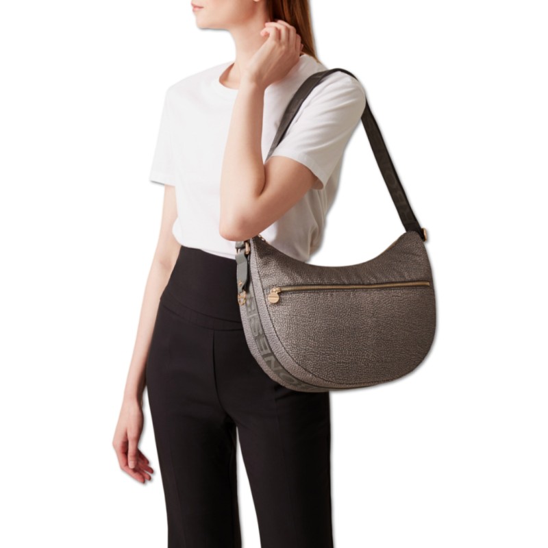 El icónico Luna Bag de Borbonese se convierte en un "hobo" mediano de la Línea Eco. Combinación ideal de estilo y versatilidad.
