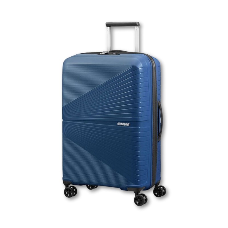 Carro Airconic mediano fabricado en polipropileno resistente con cremallera recubierta hidrófuga, ruedas dobles de suave funcionamiento, asas ergonómicas y cerradura empotrada con combinación de tres dígitos y función TSA. Correas internas para ropa en la parte superior e inferior, capacidad de 67 litros.