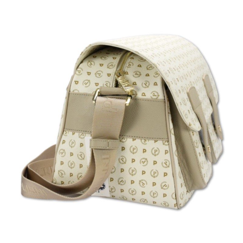 Bolso bandolera para mujer Pollini Heritage en polipiel, logo, inserciones de piel, bandolera de tela ajustable y cierre de cremallera y solapa.