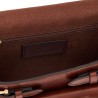 Cierre de solapa y gancho, emblema con logo central, correa para el hombro ajustable y bolsillo interno con cremallera