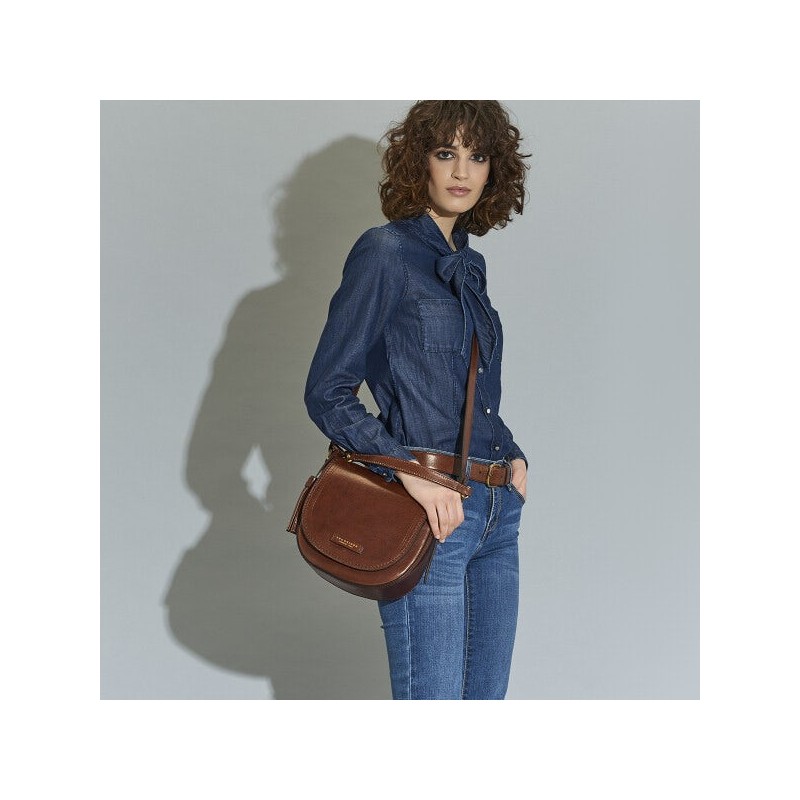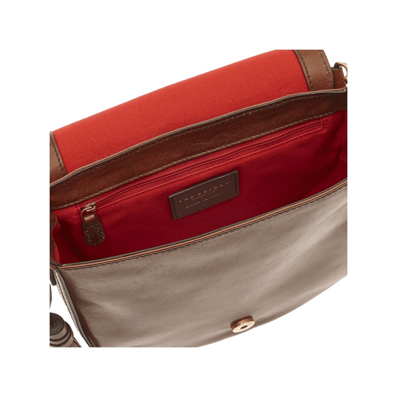 El bolso bandolera de piel Bridge tiene un diseño práctico y esencial. Minimalista y funcional, combina perfectamente con un conjunto casual o deportivo. Cierre frontal con solapa y botón a presión. Un auténtico icono de The Bridge con sabor retro, resultado de pura artesanía.