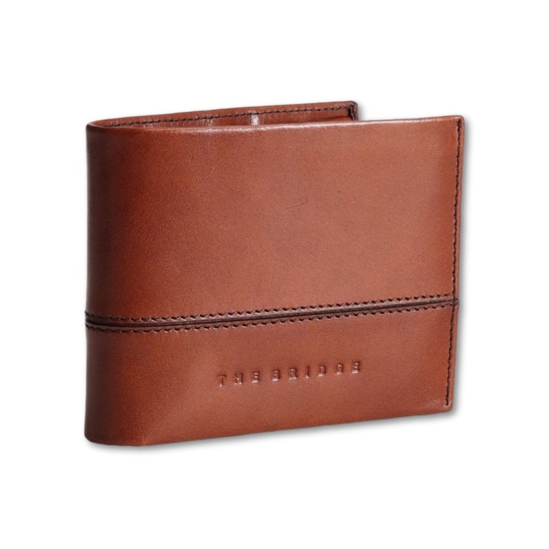 Cartera The Bridge Damiano de piel, compartimento interior para billetes, tarjetero y monedero con cremallera. Logotipo escrito en el frente.