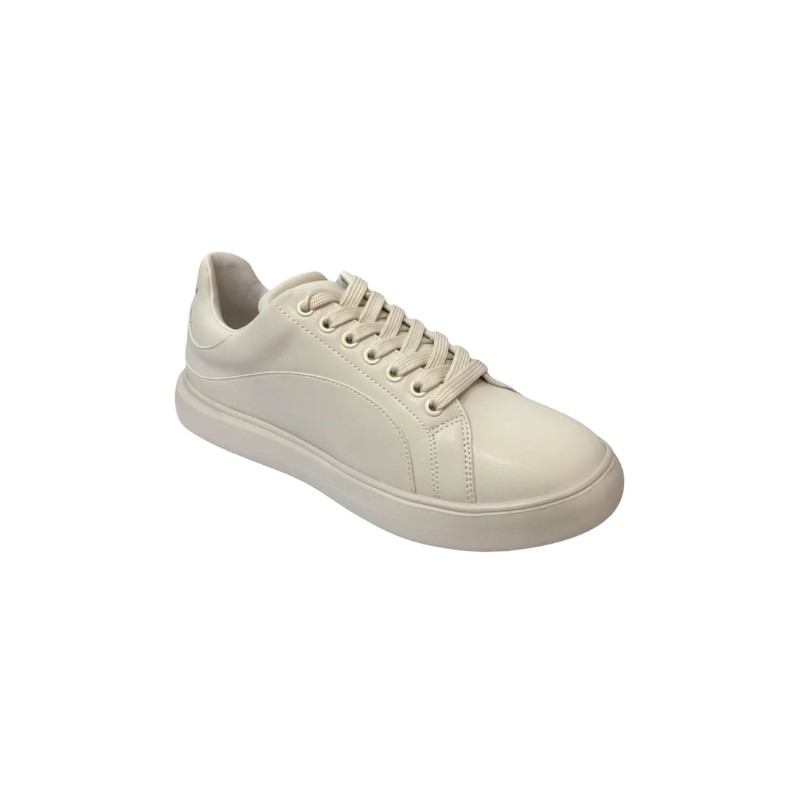 Zapatilla baja Yrias confeccionada en suave piel sintética de color liso. El modelo presenta una aplicación trasera adornada con la inscripción Trussardi. Cierre de cordones.