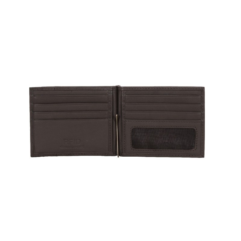 Cartera con clip sujeta billetes realizado en piel bovina con materiales de primera