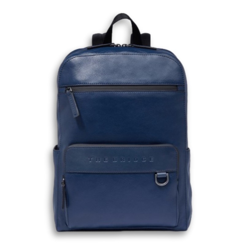 Mochila para hombre The Bridge con tirantes ajustables. Amplio y cómodo compartimento con cierre de cremallera y práctico bolsillo externo para servicios en la parte delantera. Acabado liso y logo aplicado en el frente.