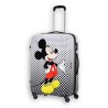 Disney: ¡estilo turista americano! Si todavía eres un niño de corazón, no te pierdas estos nuevos y cautivadores bolsos y maletas de Disney. El sabor retro y pop art de la maleta Mickey Mouse de American Tourister es todo lo que necesitas para aportar una pizca de alegría Disney a tus viajes. Carro de 4 ruedas equipado con cerradura de combinación, cremalleras con cerradura, asa superior y lateral,