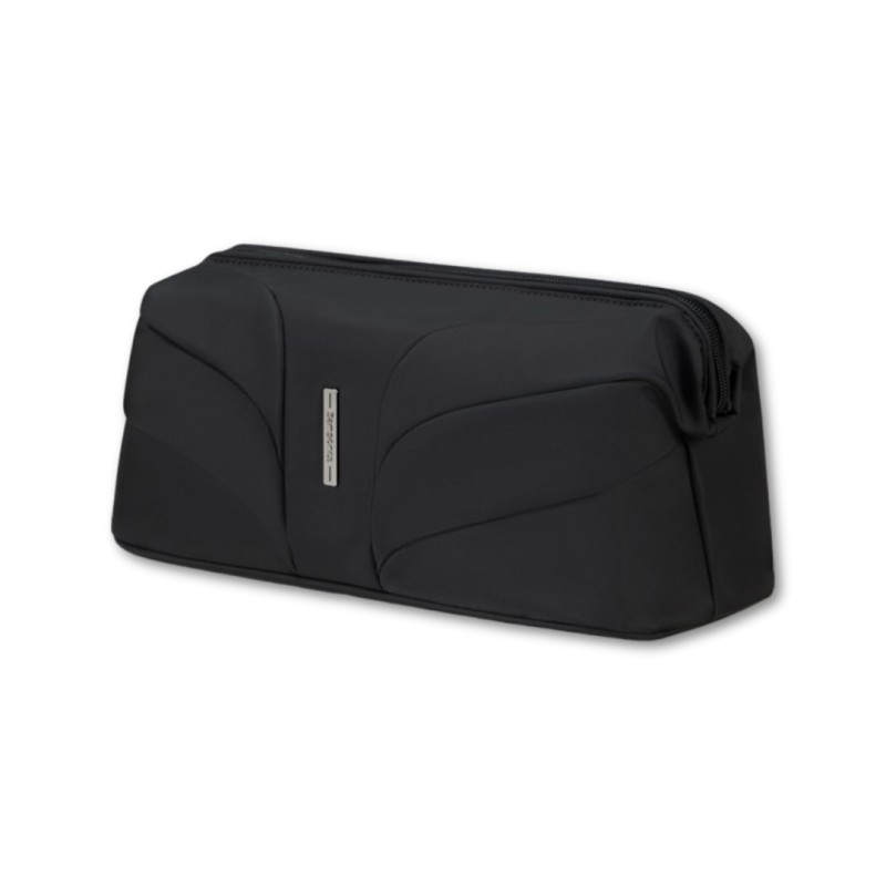 Necesario fabricado con resistente tejido reciclado. Gran bolsillo principal cerrado mediante cremallera. Interior organizado con bolsillos para objetos pequeños.