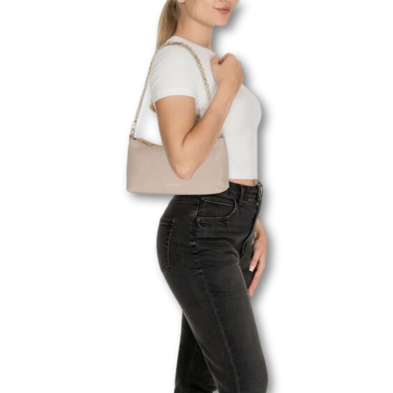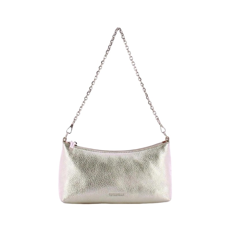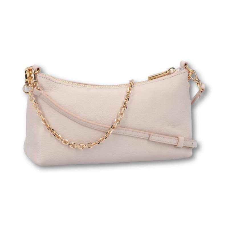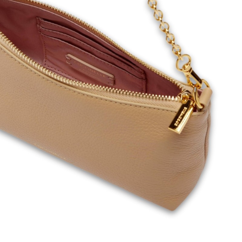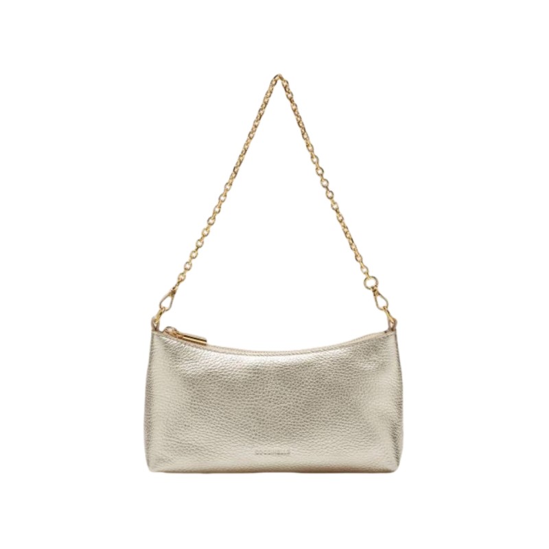 Contemporáneo y versátil, este minibolso de la línea Coccinelle Aura está diseñado para acompañarte todos los días gracias a la cómoda bandolera de piel, mientras que el asa de cadena también lo hace perfecto para un look de noche. Este modelo está elaborado con cuero procesado con maquinaria específica y luego secado para mantener su suavidad. Es una piel muy resistente que se presta a una fácil limpieza, ideal para el uso diario.