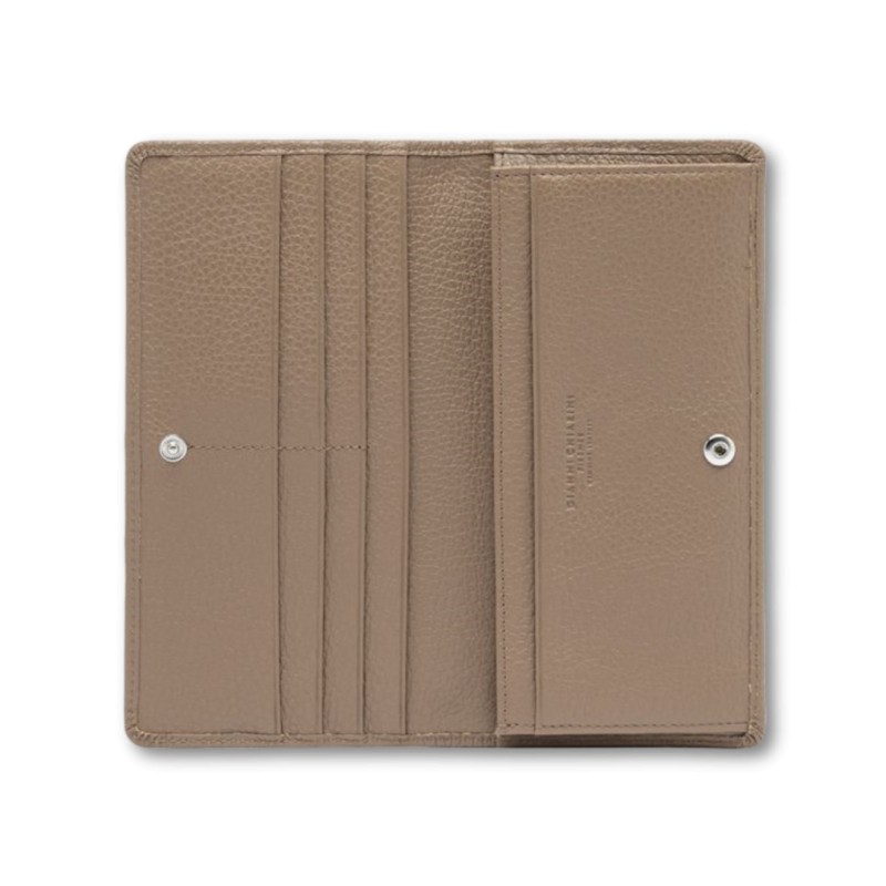La billetera Wallets Dollaro Gianni Chiarini es de piel texturizada. Equipado con una apertura con botón a presión. En el interior hay varios compartimentos. No hay bolsillos para tarjetas y una cremallera en la parte trasera.