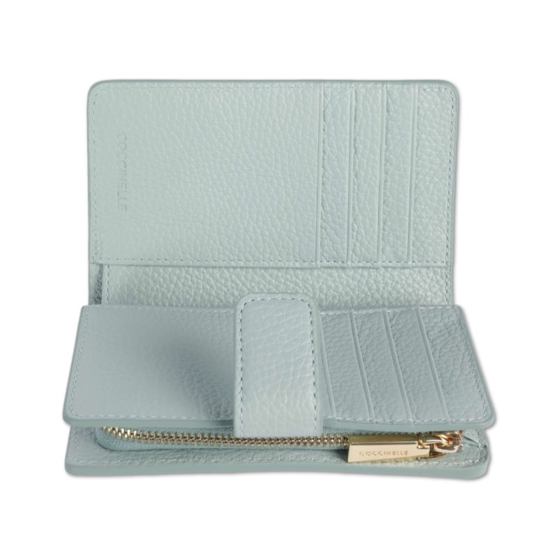 Esta cartera de la línea Metallic está adornada con el logo Coccinelle de metal. Práctico y espacioso, es perfecto por su tamaño largo pero compacto. Internamente lo mejor es organizarse para tener siempre a mano los elementos necesarios. Este modelo está elaborado con cuero procesado con maquinaria específica y luego secado para mantener su suavidad. Es una piel muy resistente que se presta a una fácil limpieza, ideal para el uso diario.