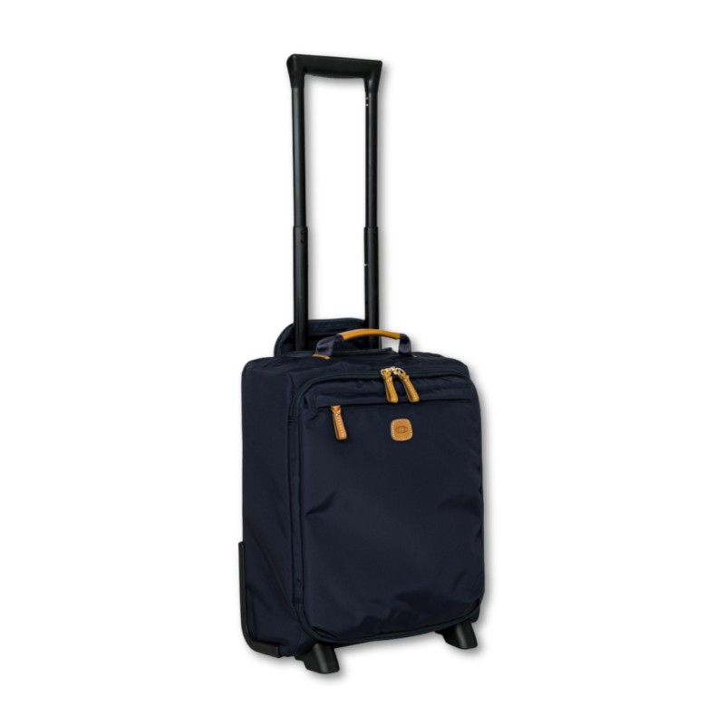 El carrito de cabina debajo del asiento X-Collection tiene el tamaño adecuado para caber en el compartimento debajo del asiento de un avión. Permite maximizar la capacidad de tu equipaje de mano, en una forma más compacta. Fabricado con nailon reciclado duradero e impermeable con una construcción rígida y liviana. Enriquecido con piezas de cuero genuino, una característica distintiva de Bric's, y detalles del logotipo.