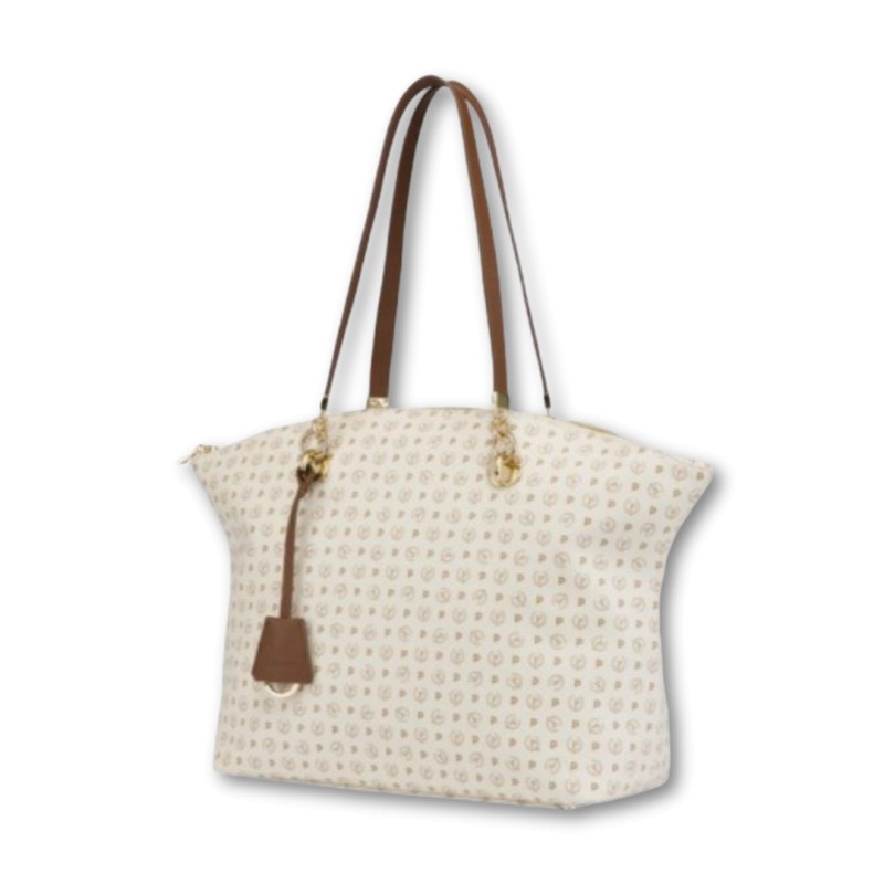 Práctico bolso Tote de la colección clásica Heritage Logo. El icónico monograma integral le otorga un toque elegante y atemporal. Las asas, en piel y cadena dorada, son intercambiables y constituyen un elemento decorativo y funcional al mismo tiempo. Portabilidad debajo del hombro. Llavero clochette.