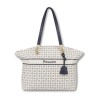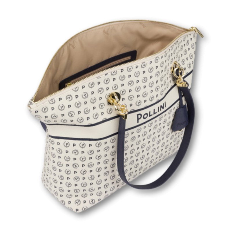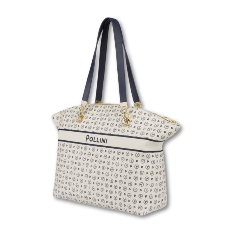 Práctico bolso tote creado para la exclusiva colección cápsula Heritage Marina. Bolso de hombro creado para la exclusiva colección cápsula Heritage Marina, inspirada en las atmósferas marinas del verano. El PVC Heritage adquiere un nuevo color dado por la combinación del marfil con dibujos en azul mar. El bolso se caracteriza por el logotipo de letras Pollini colocado en la esfera frontal. Asas dobles intercambiables y desmontables.